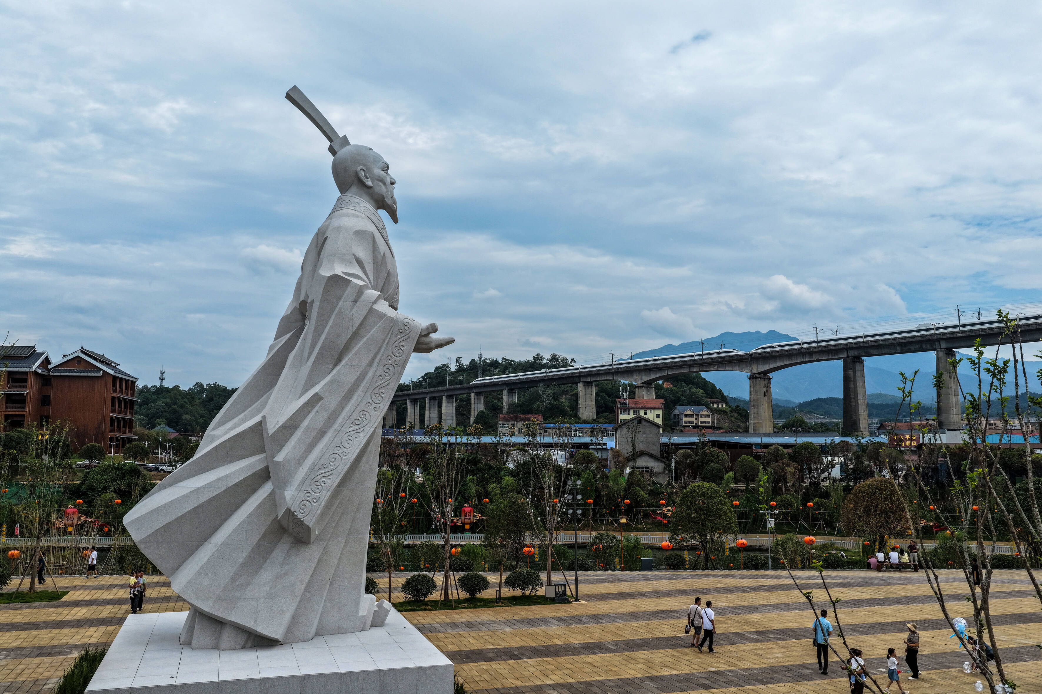 (图为天问岛上屈原雕像。怀化日报全媒体记者 潘雨 摄)