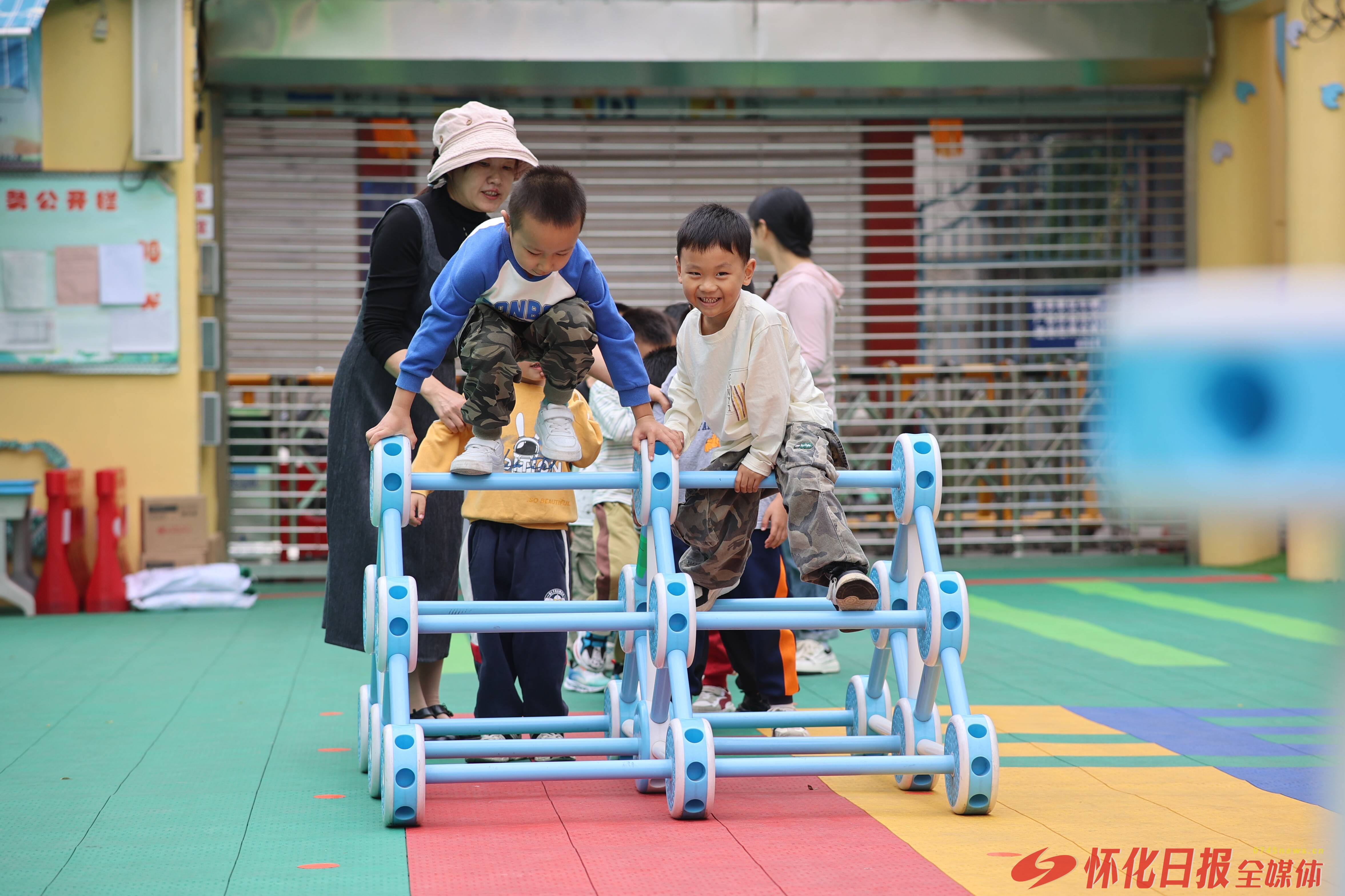 (通道侗族自治县幼儿园,学生们在大课间进行“体能大循环”训练。李尚引 摄)