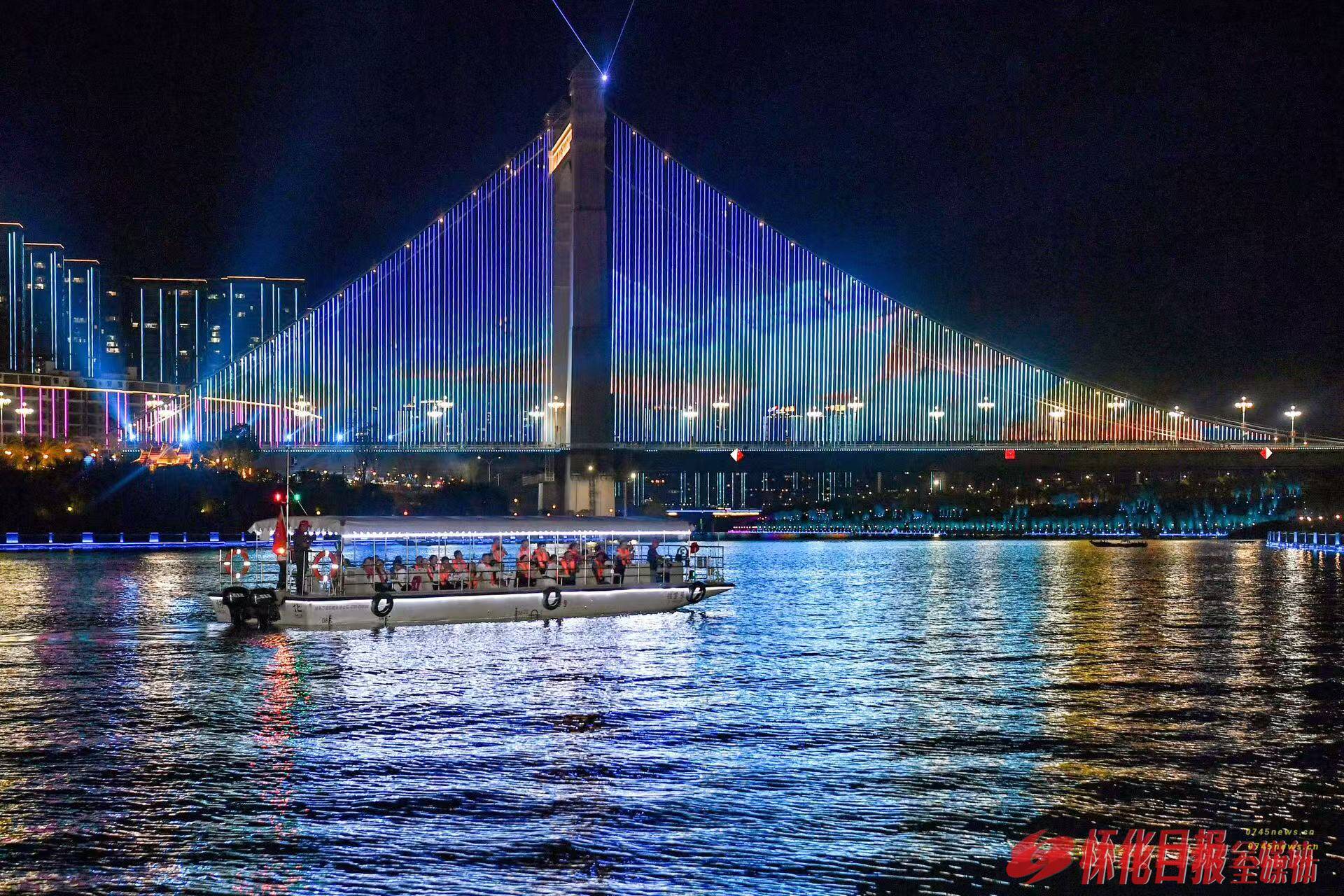 (游客乘船欣赏夜景。全媒体记者 杨智伟 摄)